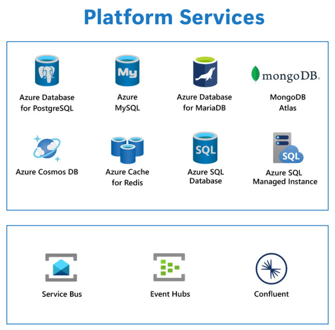 In addition to providing several options for running your Java code, Azure offers a broad range of fully managed services to support your database needs - including Azure Database for PostgreSQL, Azure Database for MySQL, MongoDB Atlas, Azure Cosmos DB, Azure SQL Database, and Azure SQL Managed Instance. The same holds true for messaging, with options that include Azure Service Bus, Azure Event Hubs, and Apache Kafka for Confluent Cloud.