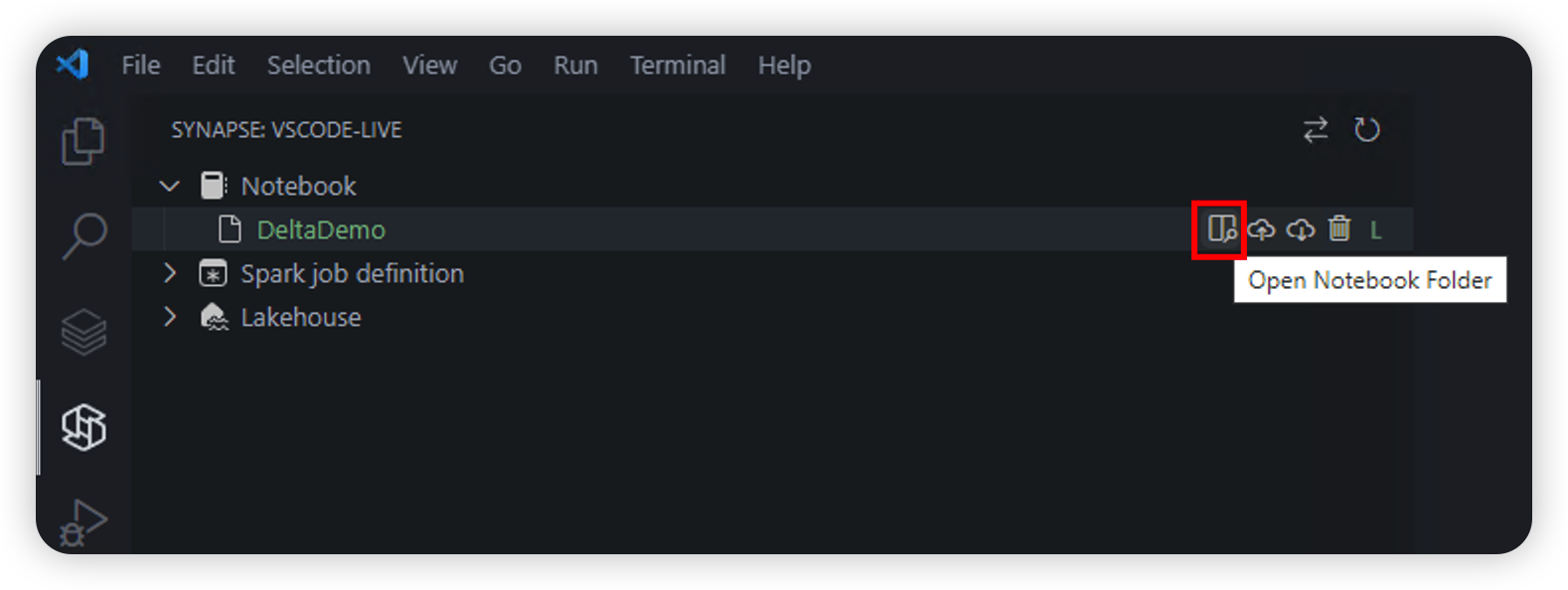 Vælg knappen Åbn notesbogmappe for at åbne notesbogmappen i VS Code Explorer. Notesbogmappen indeholder notesbogfilen og ressourcemappen, hvor du kan finde alle de ressourcefiler, du har overført til notesbogressourcen.