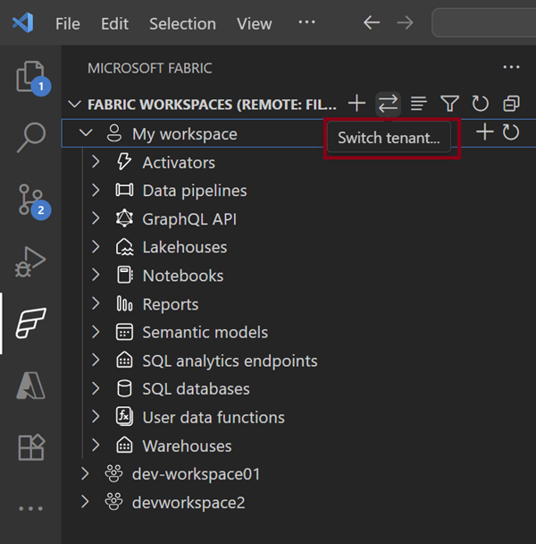 - Log ind og administrer access til en Fabric-konto med VS Code-konti.