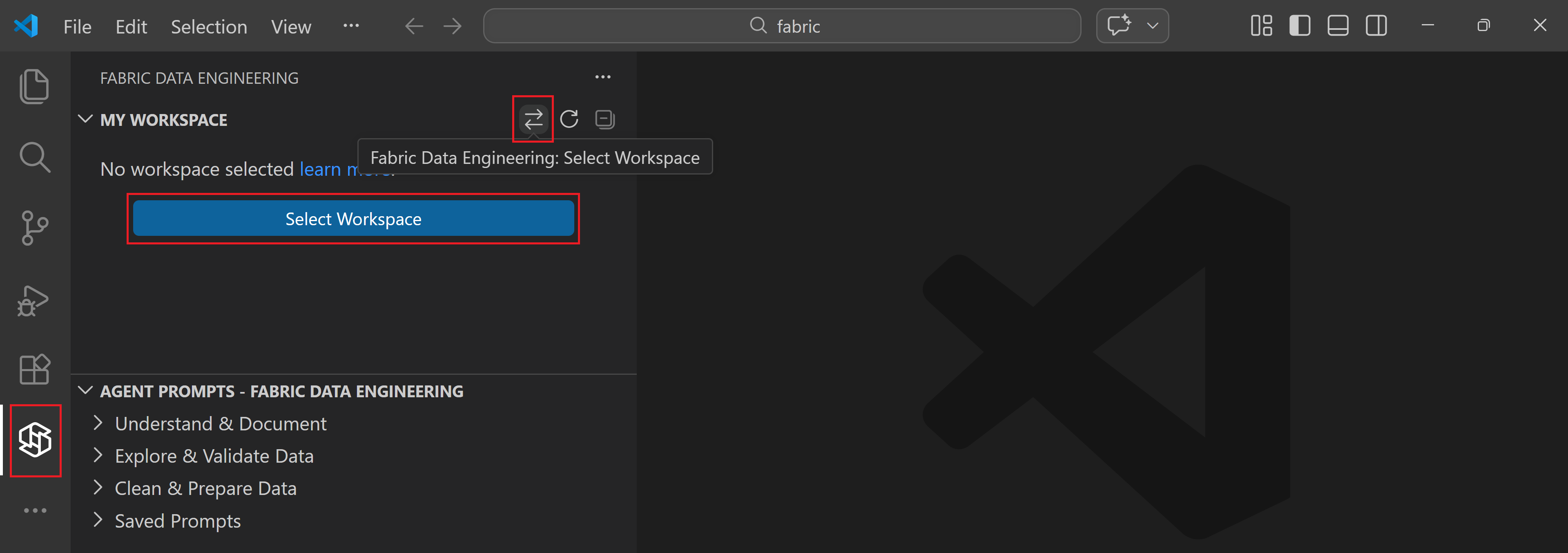 Vælg Fabric Data Engineering-ikonet i aktivitetslinjen for at åbne udvidelsens sidebjælke.
