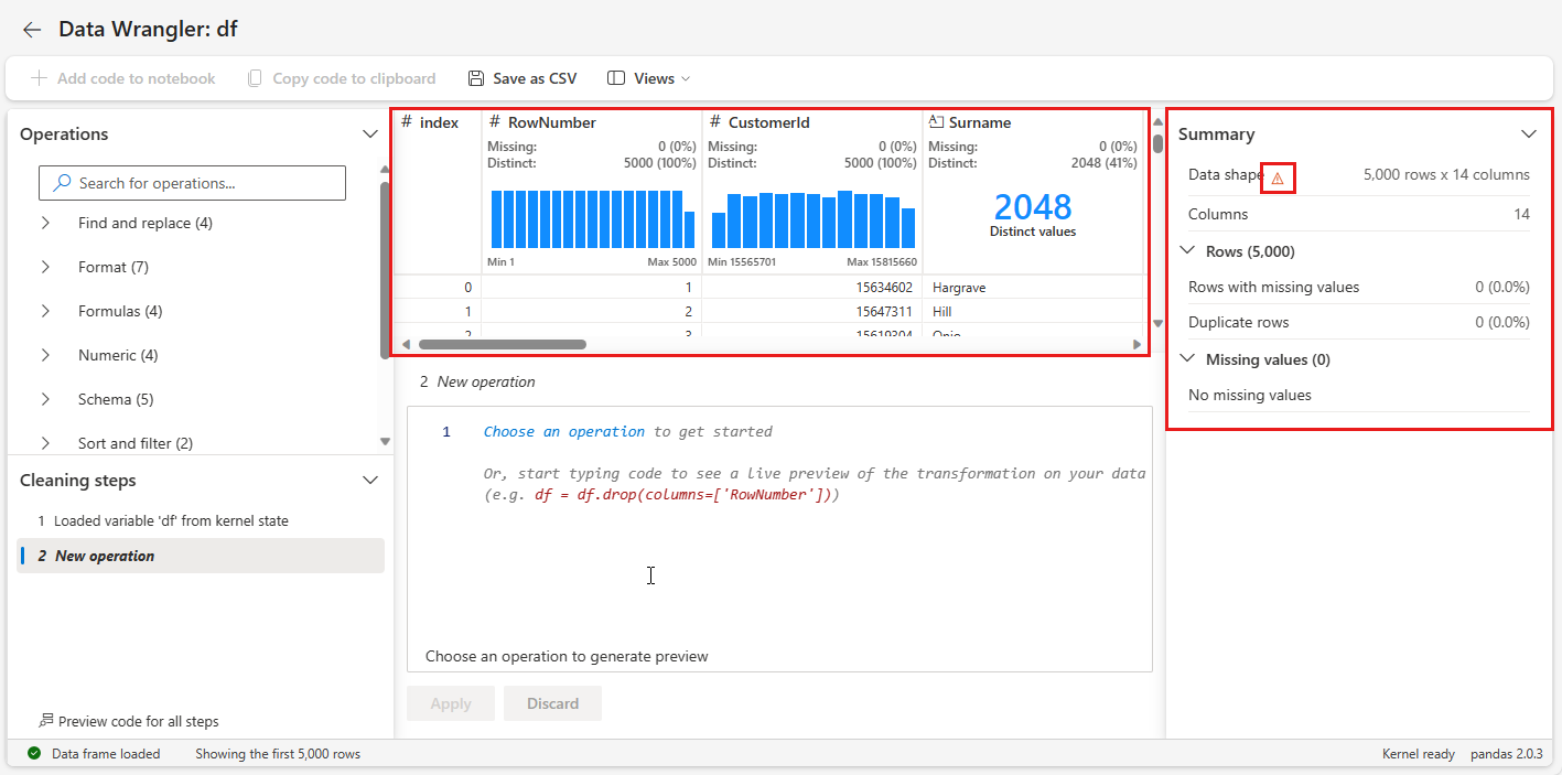 Du skal også bruge Data Wrangler, et notesbogbaseret værktøj, der giver dig en fordybende oplevelse til at udføre udforskning af dataanalyser og rengøring.