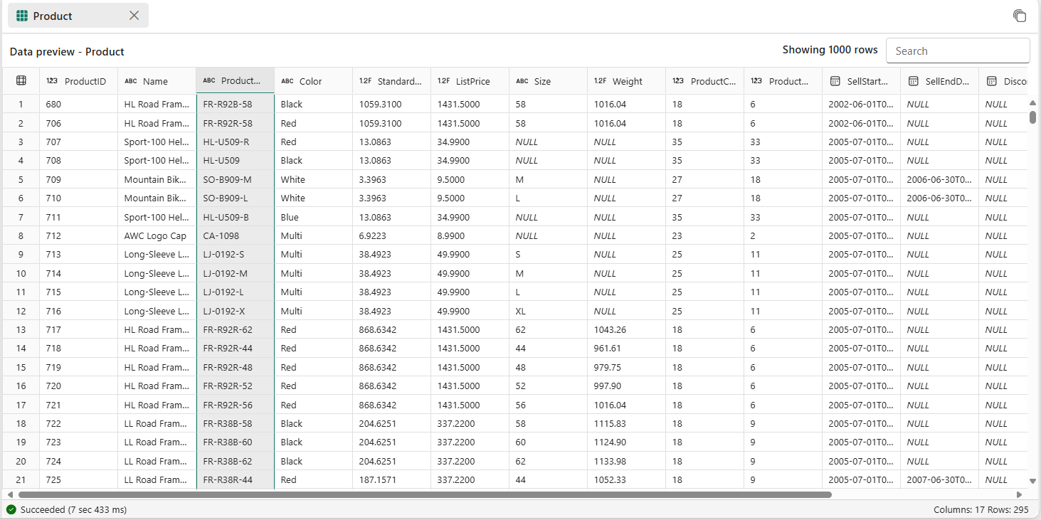 - Hvis antallet af returnerede rækker er mere end 10.000 rækker, er prøveversionen begrænset til 10.000 rækker. For at se hele resultatsættet kan du også forbinde til din SQL-database med SQL-forbindelsesstreng eller åbne direkte i SQL Server Management Studio (SSMS) eller MSSQL Extension for Visual Studio Code.