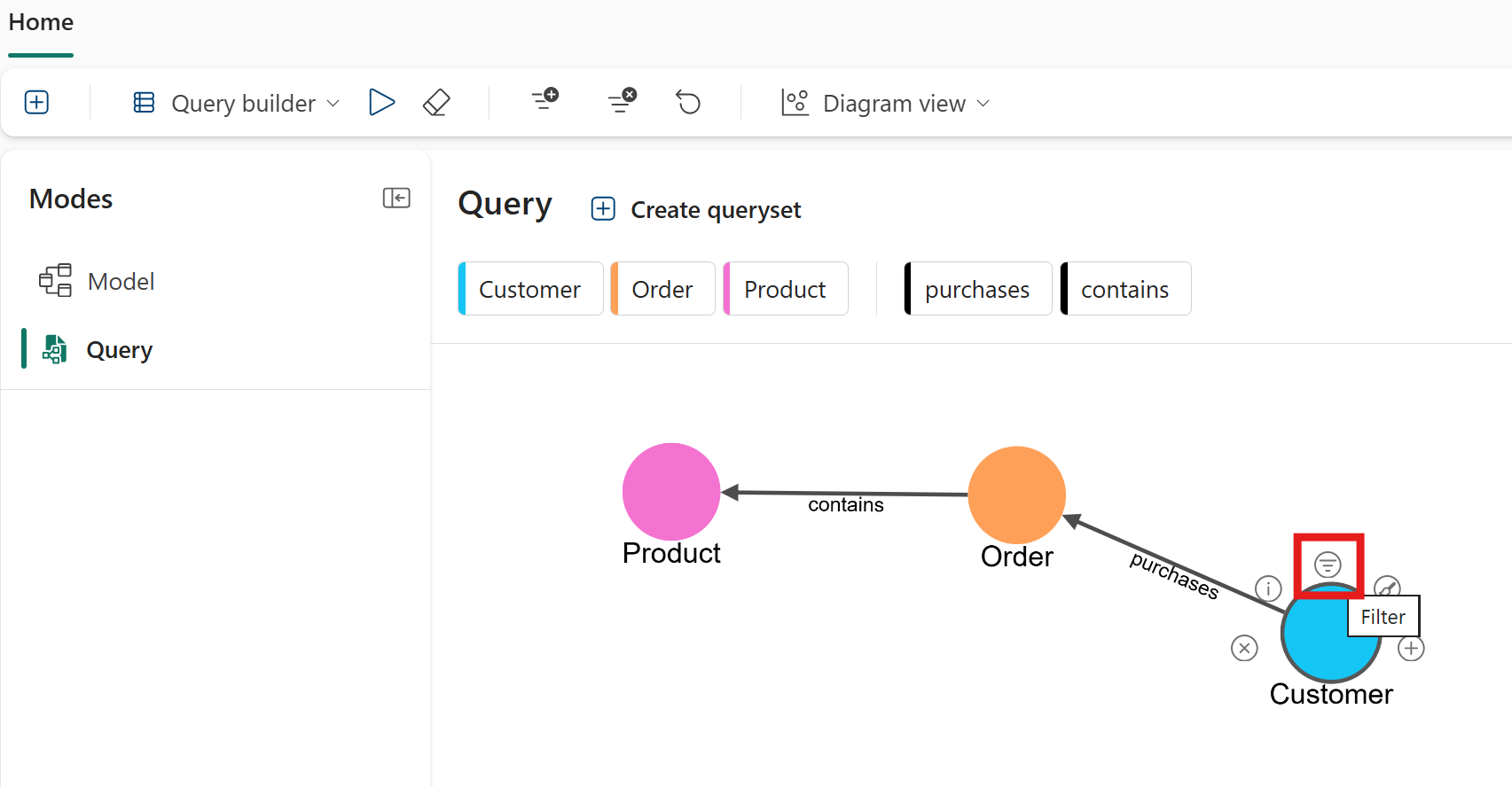 - Diagramvisning: Visualiser grafens struktur og relationer. Denne visning er standardvisningen.