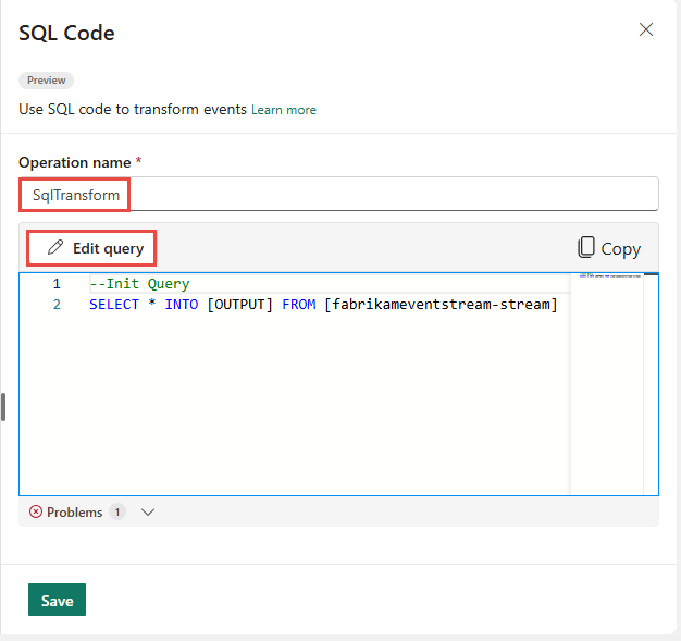 En SQL-operator, også kaldet en SQL-kodeeditor, er en ny datatransformationsfunktion i Microsoft Fabric eventstreams. SQL-operatorer giver en koderedigeringsoplevelse, hvor du nemt kan definere din egen brugerdefinerede datatransformationslogik ved hjælp af enkle SQL-udtryk. I denne artikel beskrives det, hvordan du bruger en SQL-operator til datatransformationer i en hændelsesstrøm.