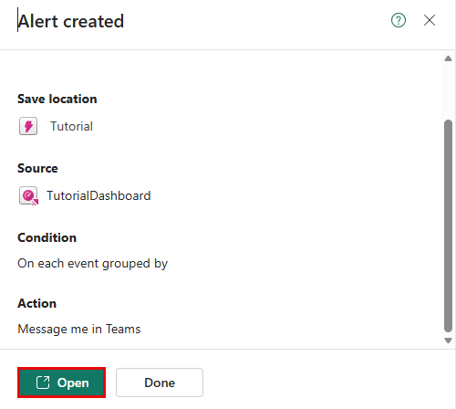 For flere detaljer, se Opret advarsler for et Real-Time Dashboard.