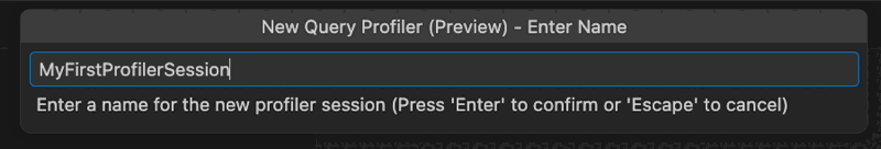 Screenshot of the session name input prompt for a new Query Profiler session.