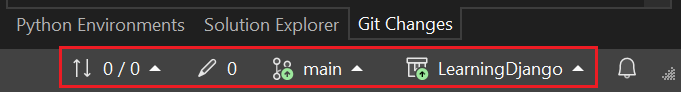 On the Git controls bar, select the changes (pencil #) to open the Git Changes window. You can also select View > Git changes (Ctrl+O, Ctrl+G):