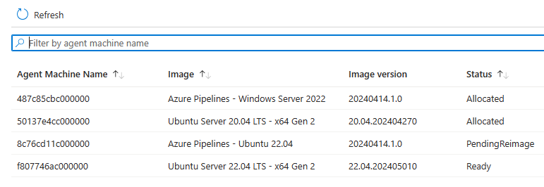 Um den Status der Agents in Ihrem Pool anzuzeigen, wechseln Sie zu Ihrem Pool, und wählen Sie Einstellungen>Agents aus.