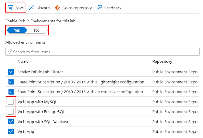 So aktivieren oder deaktivieren Sie den Zugriff auf öffentliche Umgebungs-Repositorys für ein vorhandenes Labor: