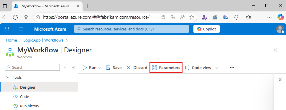 Wenn Sie Werte abstrahieren müssen, die sich in Workflows in Entwicklungs-, Test- und Produktionsumgebungen ändern können, können Sie Workflowparameter definieren. Wenn Sie diese Parameter anstelle von umgebungsspezifischen Variablen verwenden, können Sie sich stärker auf das Entwerfen Ihrer Workflow-Geschäftslogik konzentrieren und später Ihre umgebungsspezifischen Variablen einfügen.