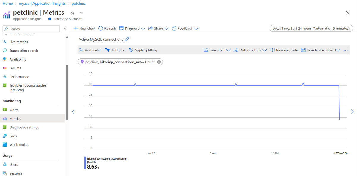 In diesem Abschnitt erfahren Sie, wie Sie Metriken mit Ihrer Anwendung verwenden und die Metriken auf einem Azure-Dashboard mithilfe der wichtigsten Metrikdiagramme überwachen, die von Azure Spring Apps und Application Insights generiert werden.