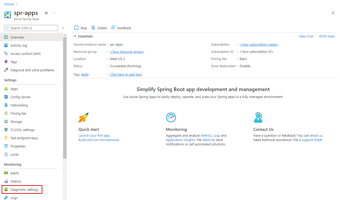 Navigieren Sie im Azure-Portal unter Überwachung zu Diagnoseeinstellungen.