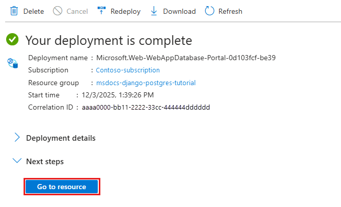 - Wählen Sie in der Ressourcengruppe"msdocs-python-postgres-tutorial" aus.