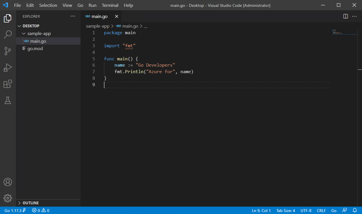 In dieser Schnellstartanleitung installieren Sie den Go-Compiler und die Tools, installieren Visual Studio Code zum Schreiben von Go-Code und installieren die Go für Visual Studio Code-Erweiterung, die Unterstützung beim Schreiben von Go bietet. Nach der Konfiguration erstellen Sie eine Anwendung, führen sie aus, und verwenden Sie das Debuggingtool, um die Ausführung anzuhalten und den Wert von Variablen zu beobachten.