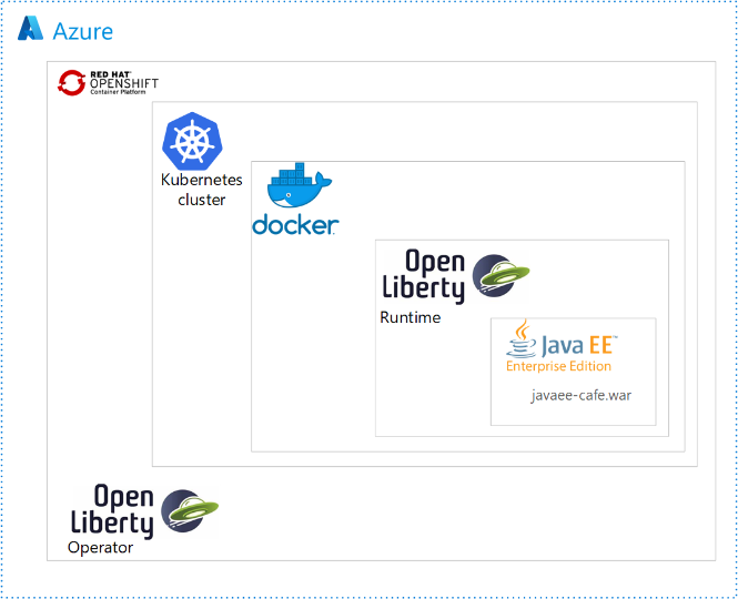 Um Ihre Liberty-Anwendung auf einem Azure Red Hat OpenShift-Cluster bereitzustellen und auszuführen, containern Sie Ihre Anwendung als Docker-Image mithilfe von Open Liberty-Containerimages oder WebSphere Liberty-Containerimages.