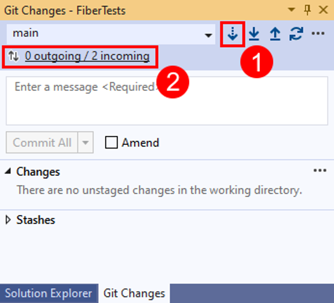 In Visual Studio führt Sync einen Pull aus und führt dann einen Push aus, um eine lokale und Remote-Verzweigung zu synchronisieren. Weitere Informationen zur Synchronisierung finden Sie unter Verwenden von Git Fetch, Pull, Push und Synchronisierung für die Versionssteuerung in Visual Studio.
