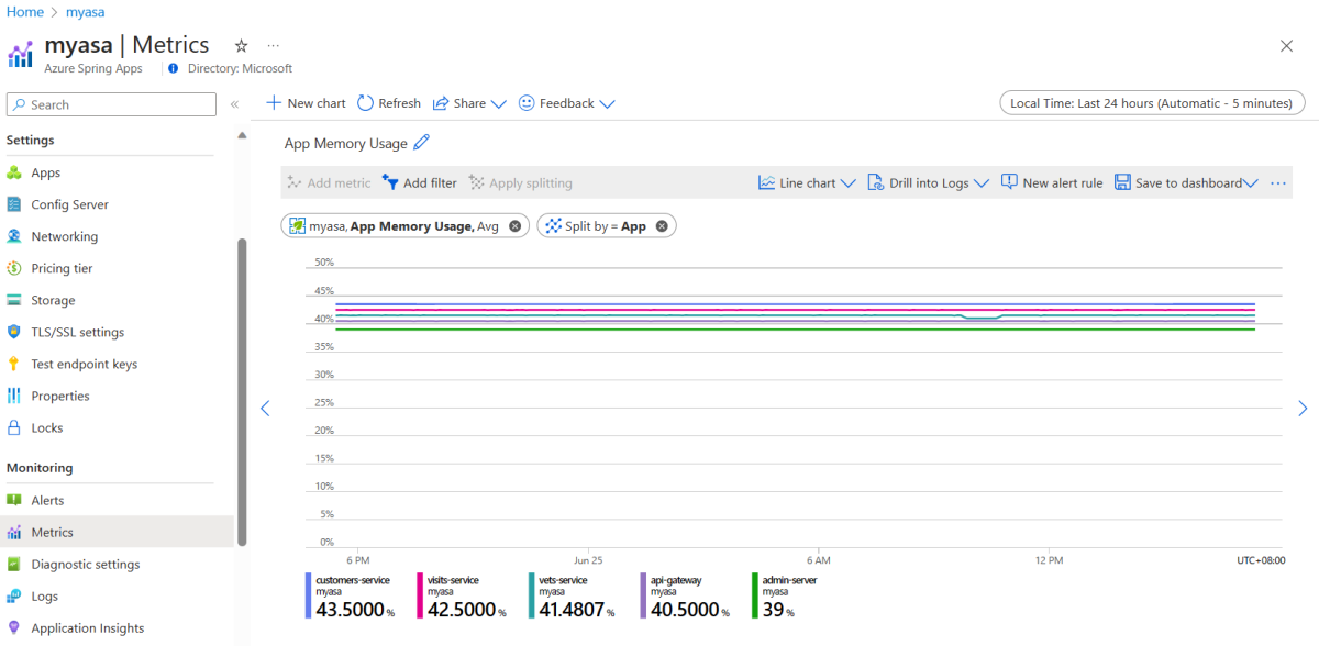 In diesem Abschnitt erfahren Sie, wie Sie die von Spring Boot definierten Standardmetriken sowie benutzerdefinierte, im Anwendungscode definierte Metriken verwenden. Diese Metriken sind für Anwendungen verfügbar, die in Azure Spring Apps ausgeführt werden.
