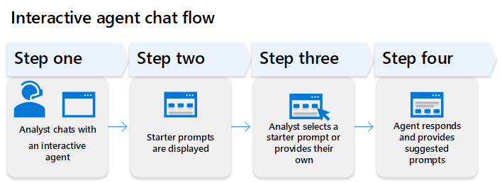 Interaktive Agents sind am effektivsten, wenn Agents und Benutzer zusammenarbeiten müssen, um eine geführte Erfahrung zu erhalten, um etwas zu lösen. Benutzer kommunizieren mit dem Agent über Eingabeaufforderungen, und der Agent passt sich anhand des Kontexts durch proaktive Zusammenarbeit an. Für Security Operations-Teams ermöglicht diese Interaktivität dem Agent, klärende Fragen zu stellen und die Entscheidungsfindung basierend auf dem sich entwickelnden Kontext zu steuern, was zu sichereren und präziseren Ergebnissen führt.
