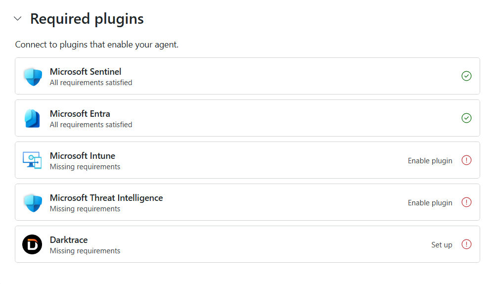 Wählen Sie Plug-In aktivieren aus, wenn das Plug-In nicht aktiviert ist. Wählen Sie beispielsweise für das Microsoft Threat Intelligence-Plug-In die Option Plug-In aktivieren für