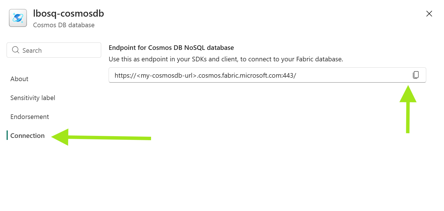 Rufen Sie Ihre Fabric Cosmos DB-Endpunkt-URL ab.