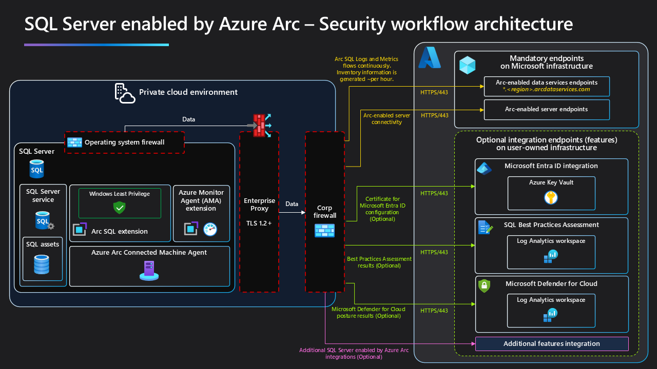 Dieser Artikel beschreibt die Sicherheitsarchitektur der Komponenten von SQL Server, die durch Azure Arc aktiviert werden.