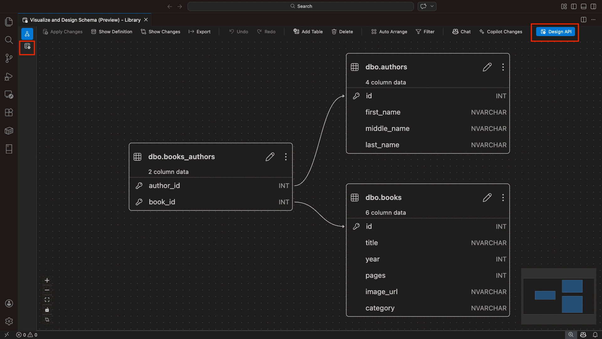 Wählen Sie im Schema-Designer die Schaltfläche "Design-API" (Schaltfläche in der oberen rechten Ecke der Symbolleiste) aus, oder wählen Sie das Back-End-Symbol im linken Bereich aus.