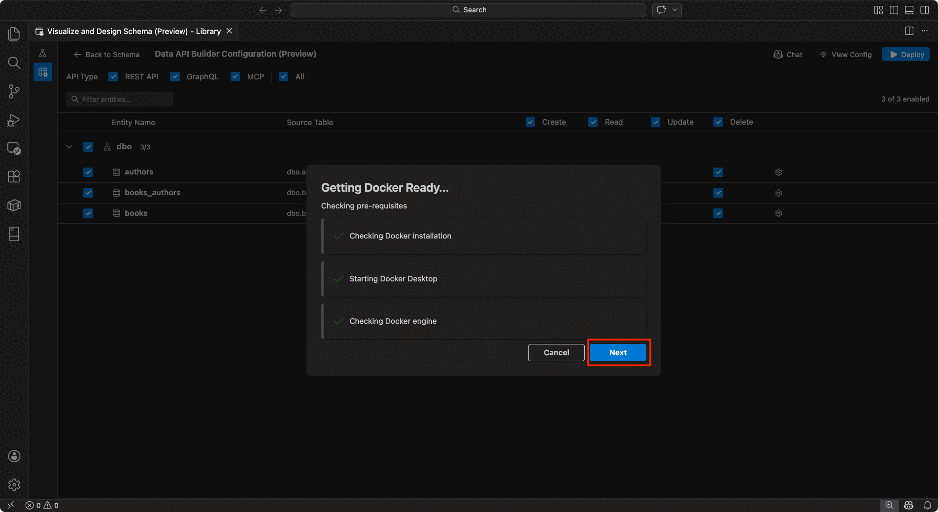 • Stellen Sie Data API builder lokal als Docker-Container mit automatisierten Prüfungen der Voraussetzungen bereit.