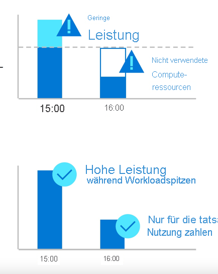Ein Hauptvorteil der Cloud ist die elastische Skalierung. Sie skalieren auf, indem Sie Anwendungsinstanzen auf der Grundlage einer erhöhten Nachfrage hinzufügen. Sie können so viel Kapazität verwenden, wie Sie benötigen, und diese bei steigender Auslastung reduzieren, und die Abskalierung durchführen, wenn die zusätzliche Kapazität nicht benötigt wird.