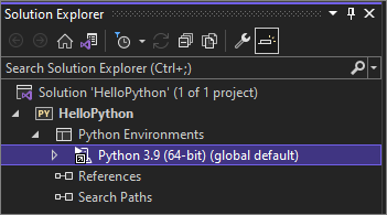Eine Visual Studio-Projektmappe ist ein Container, mit dem Sie ein oder mehrere verwandte Projekte als Gruppe verwalten können. Visual Studio zeigt Ihre Lösungen im Projektmappen-Explorer an. Die Lösung speichert Konfigurationseinstellungen, die nicht für ein Projekt spezifisch sind. Projekte in einer Lösung können auch miteinander verweisen. Beispielsweise kann das Ausführen eines Python-App-Projekts automatisch ein zweites Projekt erstellen, z. B. eine C++-Erweiterung, die von der Python-App verwendet wird.