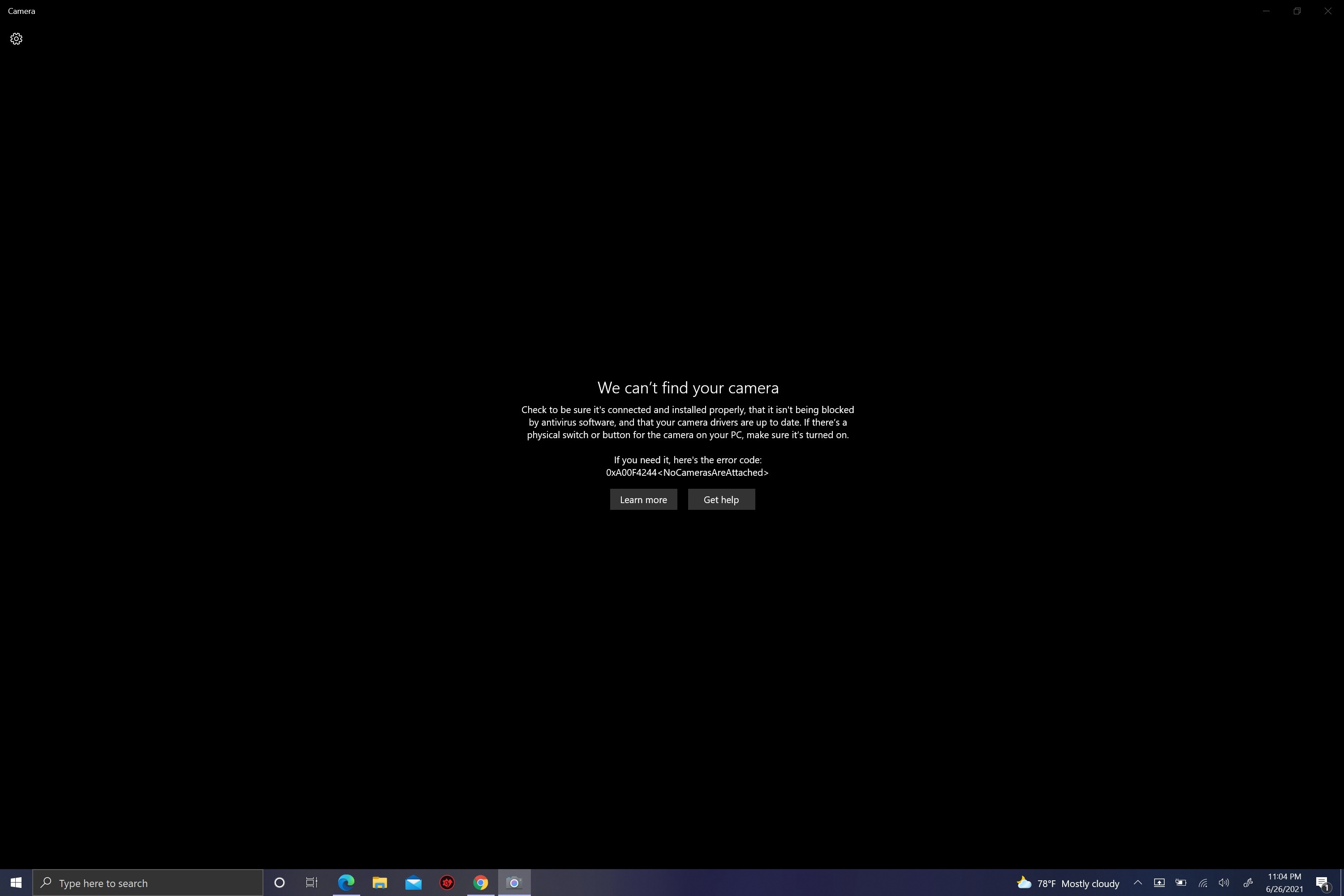 I recently just got my surface book. But, I can't use my camera because it says that it can't find my camera. How do I fix this issue? Below is what I see every time I launch the camera app on my laptop
