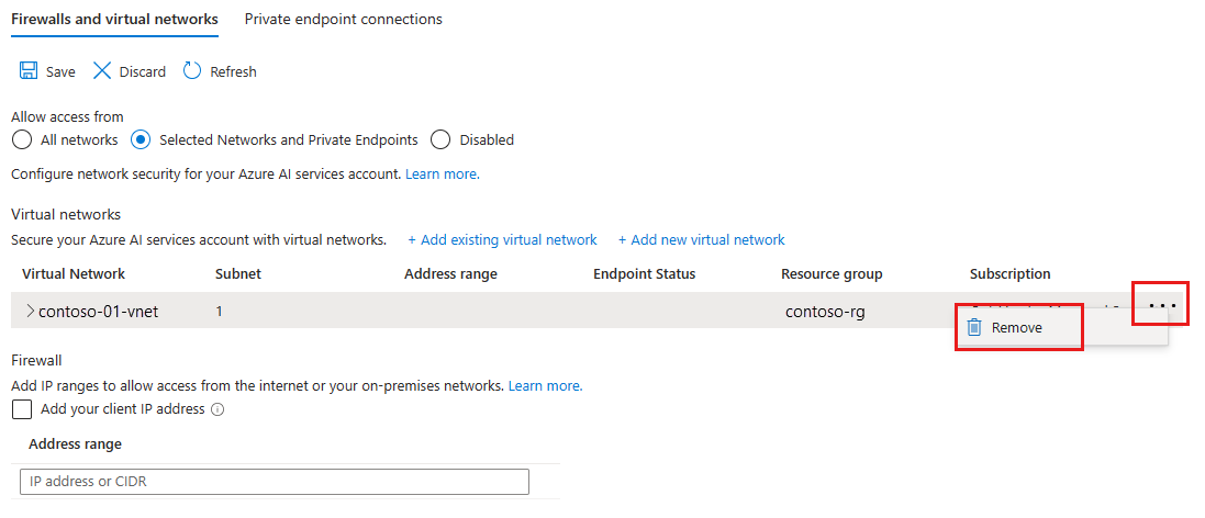 If a service endpoint for Foundry Tools wasn't previously configured for the selected virtual network and subnets, you can configure it as part of this operation.