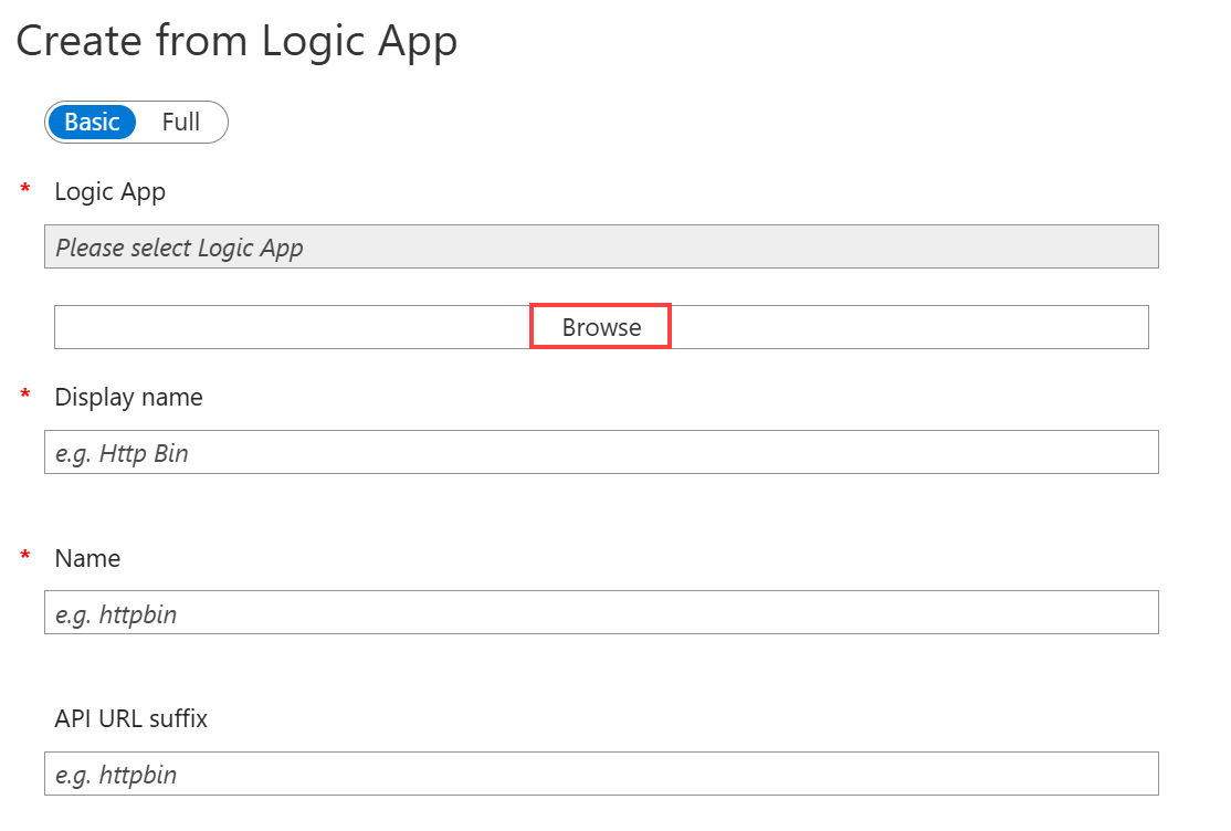 Select Browse to see the list of logic apps that have HTTP trigger in your subscription. (Logic apps without an HTTP trigger don't appear in the list.)