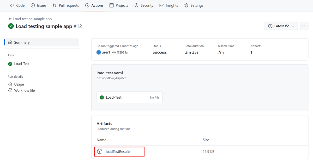 After a load test run finishes, you can view and download the load test results and the HTML report through the Azure portal, or as an artifact in your CI/CD workflow.