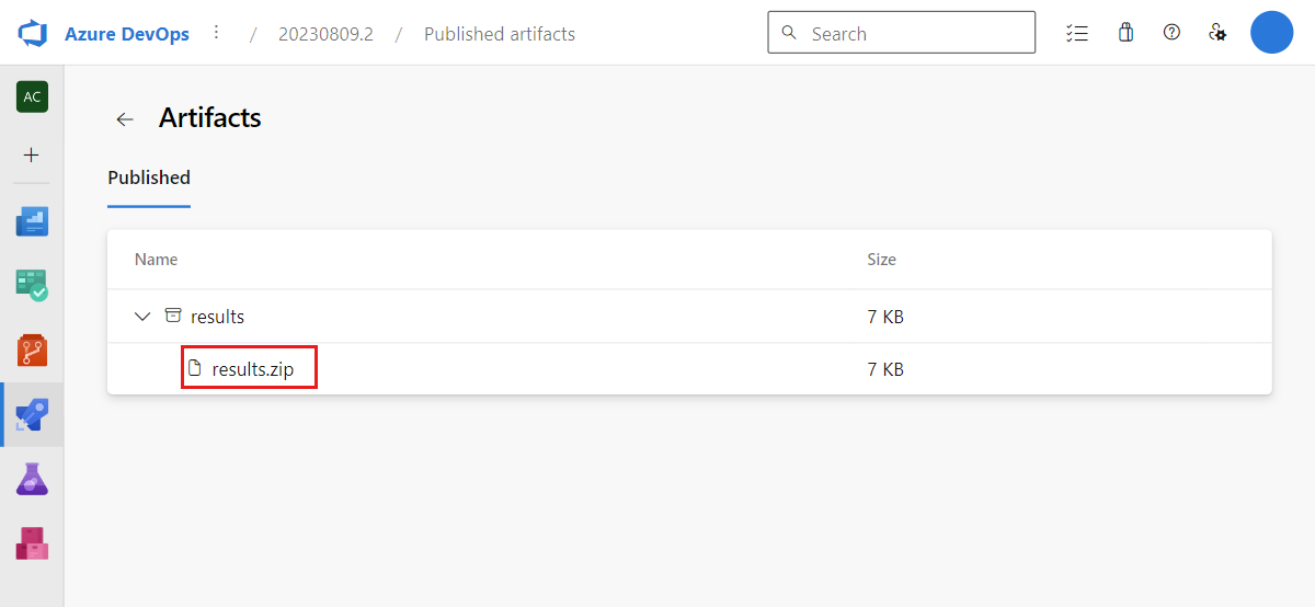 The generated CI/CD pipeline publishes the load test results as a pipeline artifact. You can download these results as a CSV file for further reporting.