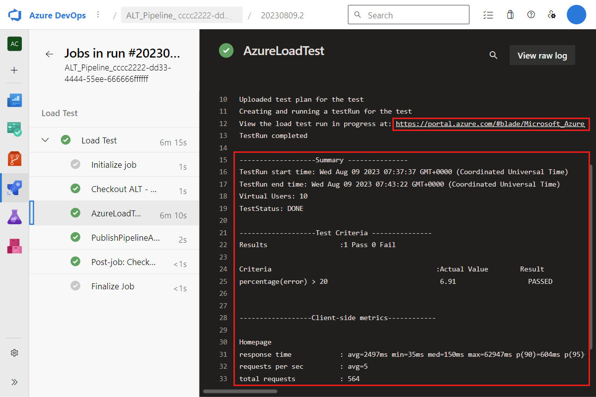 You can view the load test summary results directly in the CI/CD output log.
