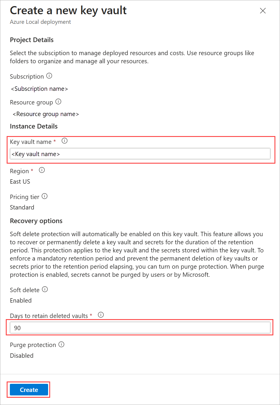 The key vault adds cost in addition to the Azure Local subscription. For details, see Key vault pricing. View security implications when sharing an existing key vault.