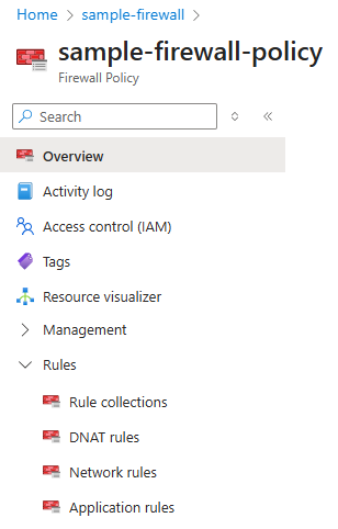 An Azure Firewall policy is a top-level resource that contains security and operational settings for Azure Firewall. You can use an Azure Firewall policy to manage rule sets that Azure Firewall uses to filter traffic. The policy organizes, prioritizes, and processes rule sets based on a hierarchy that has the following components: rule collection groups, rule collections, and rules. For more information, see Azure Firewall policy rule sets.