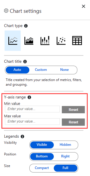 To control the y-axis range, browse to the advanced chart settings by selecting More options (...) > Chart settings.