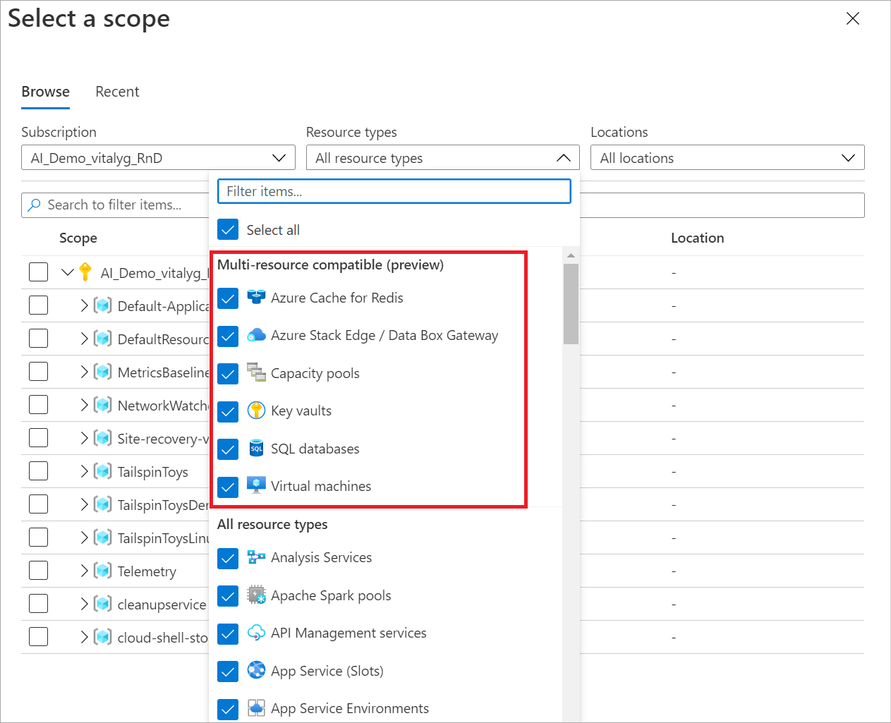 Select a resource group or subscription