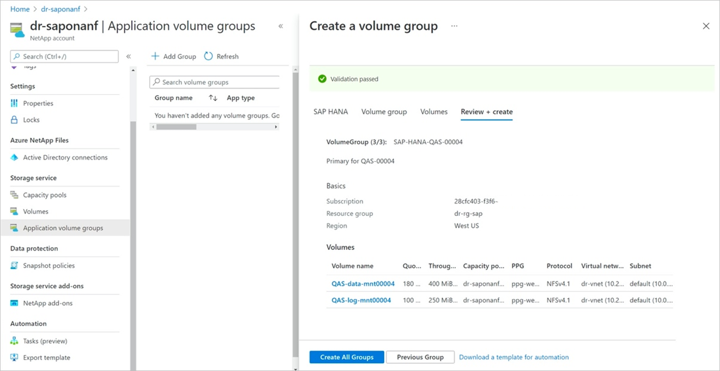 After you navigate through the volume groups, select Create All Groups to create all the volumes for the HANA hosts you're adding.