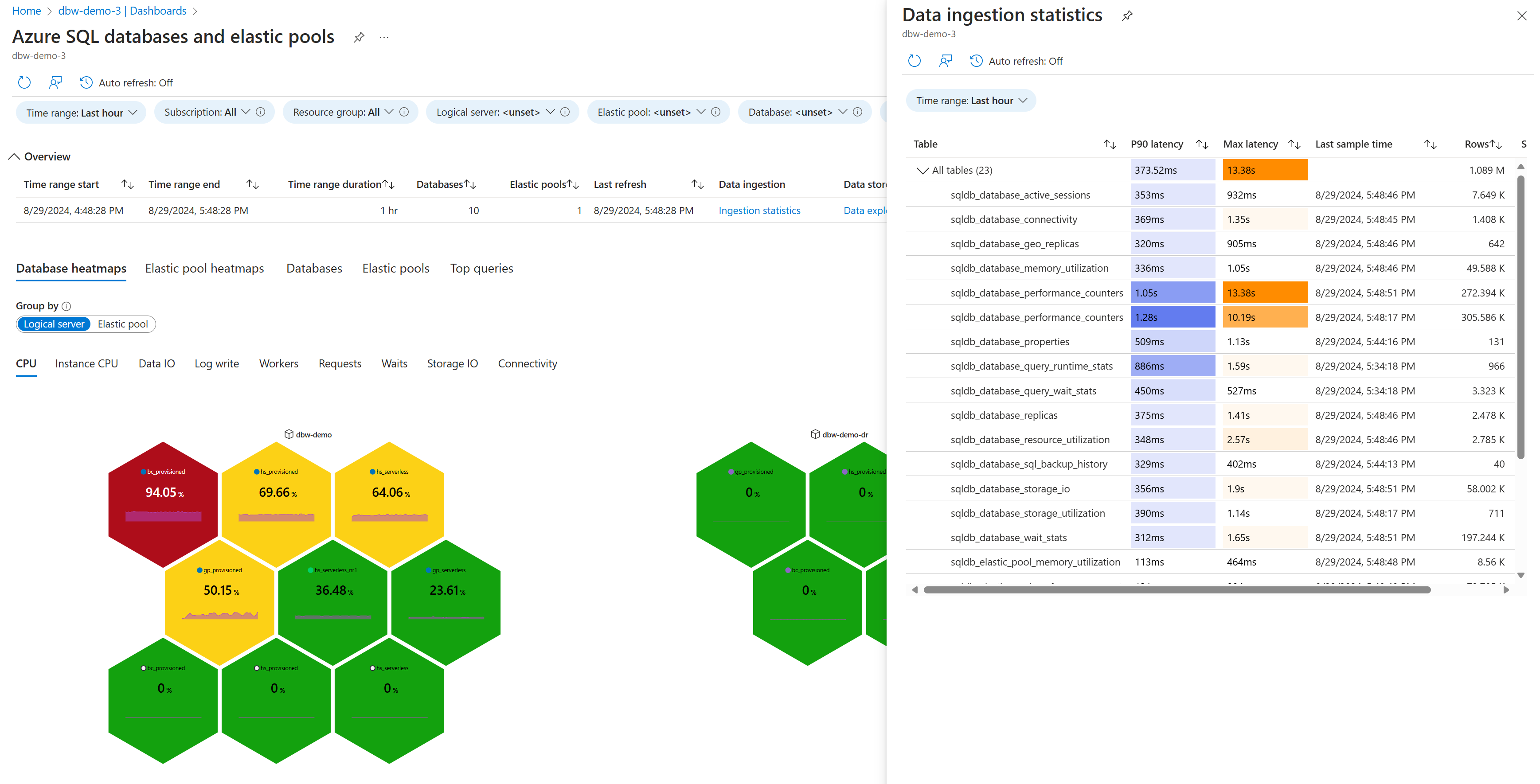 Estate dashboards Visualize high-level monitoring data for multiple monitored resources in a common view. Use heatmaps to find top resource consuming databases, elastic pools, or SQL managed instances.