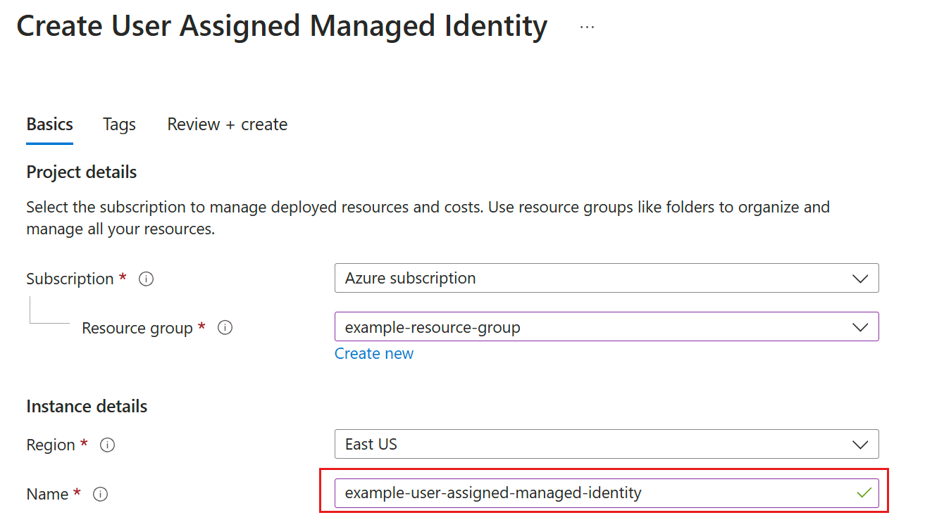 - When the validation checks finish, select Create. Azure creates a new user-assigned identity.