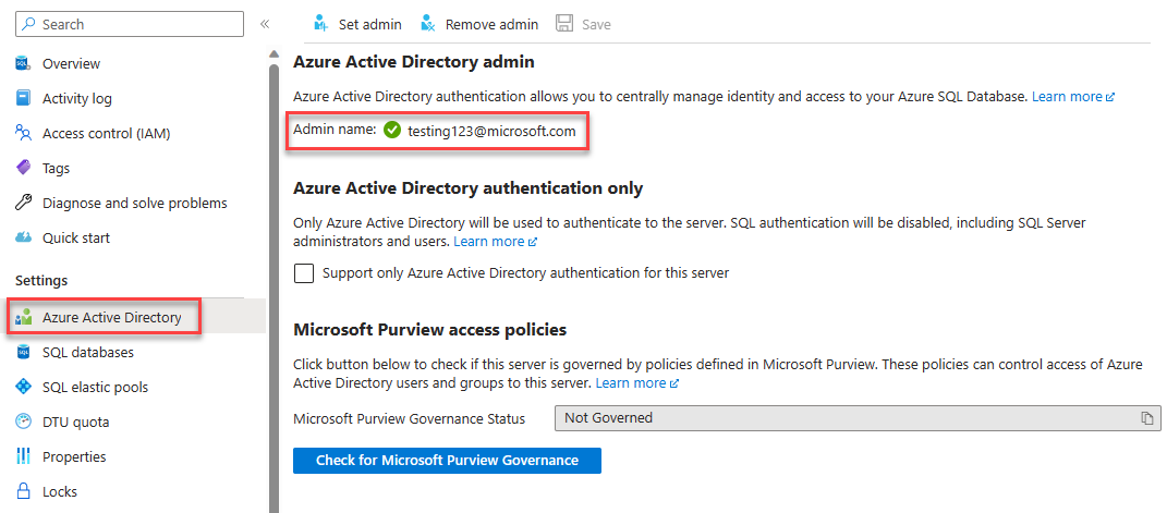 For this migration guide, ensure you have a Microsoft Entra admin assigned to your Azure SQL Database.