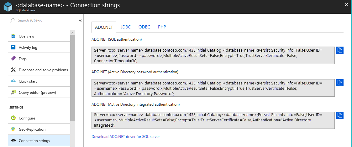 - Connection libraries for SQL Database and SQL Server