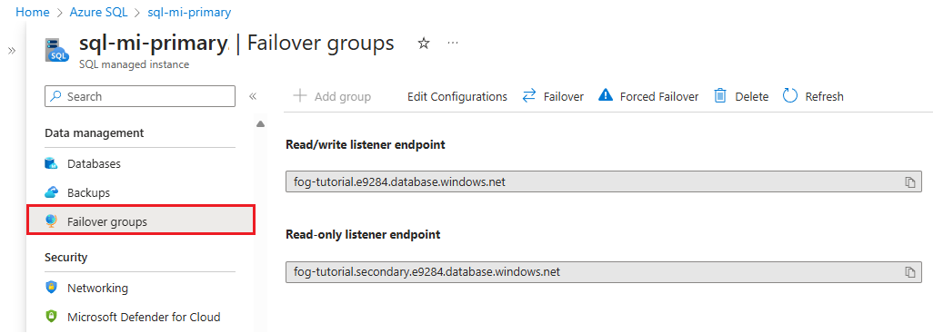 fog-name.secondary.dns-zone.database.windows.net, routes traffic to the secondary instance.