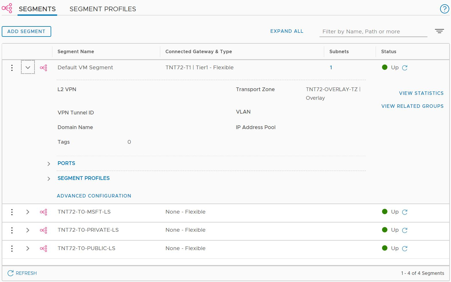 In NSX Manager, select Networking > Segments.