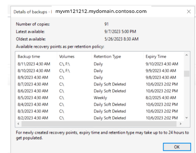 - You'll be able to restore the backed-up data for unexpired recovery points.