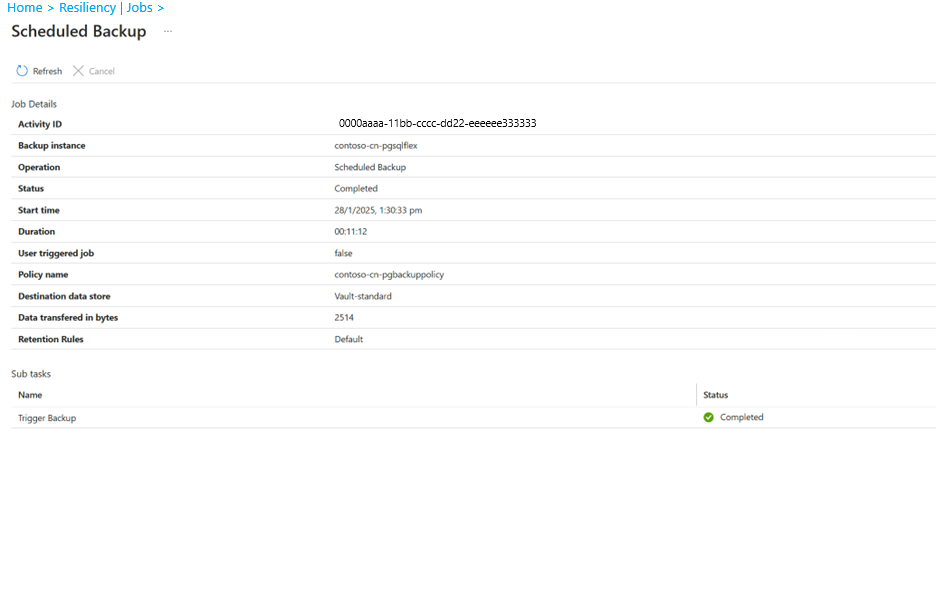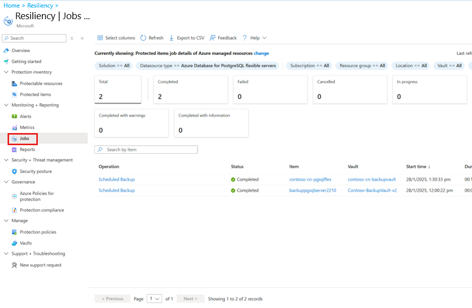 Go to Resiliency > Monitoring + Reporting > Jobs.