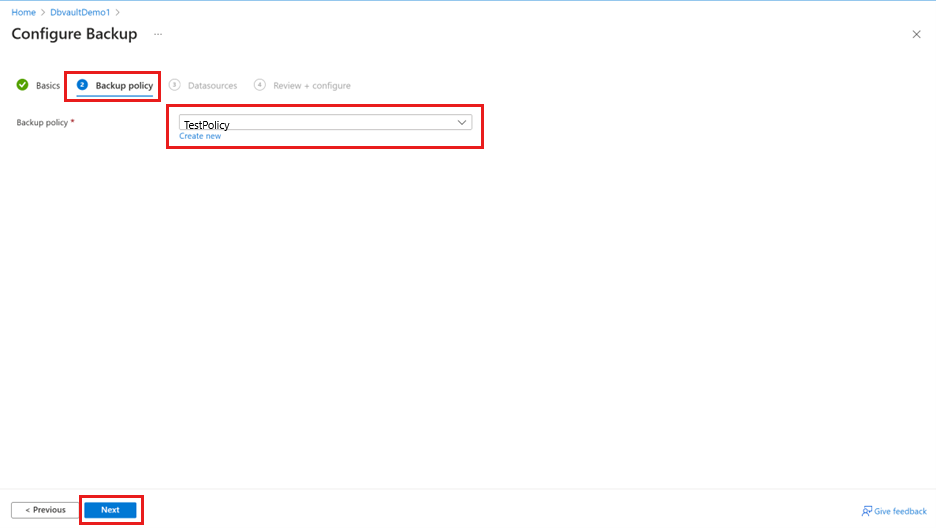 If you don't have a Backup policy, create one on the go.