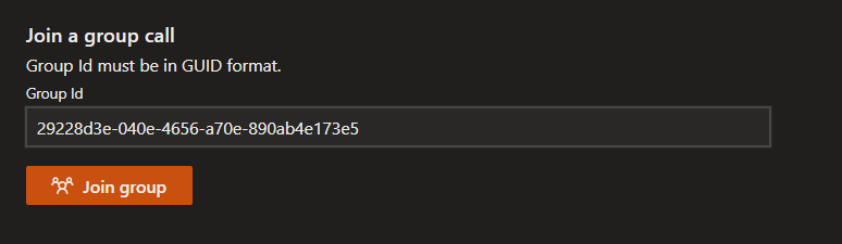 To join a group call, enter the GUID that identifies the call and click on the "Join group" button: